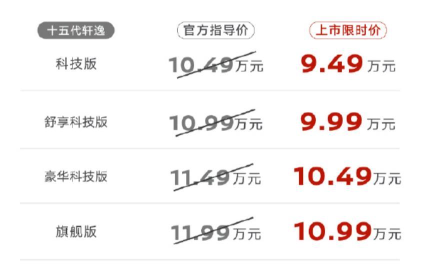 东风日产一次性迭代4款新车,其中,弥远抢占紧凑型轿车销量榜首的轩逸换代上市,限时优惠1万元;