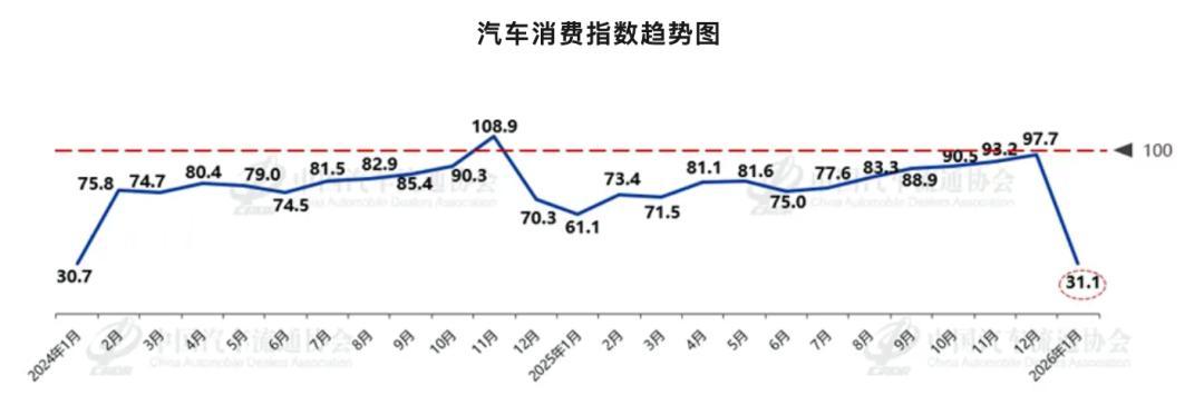 中国汽车流畅协会数据深切,本年1月的汽车虚耗指数仅为31.1,处于历史低位。
