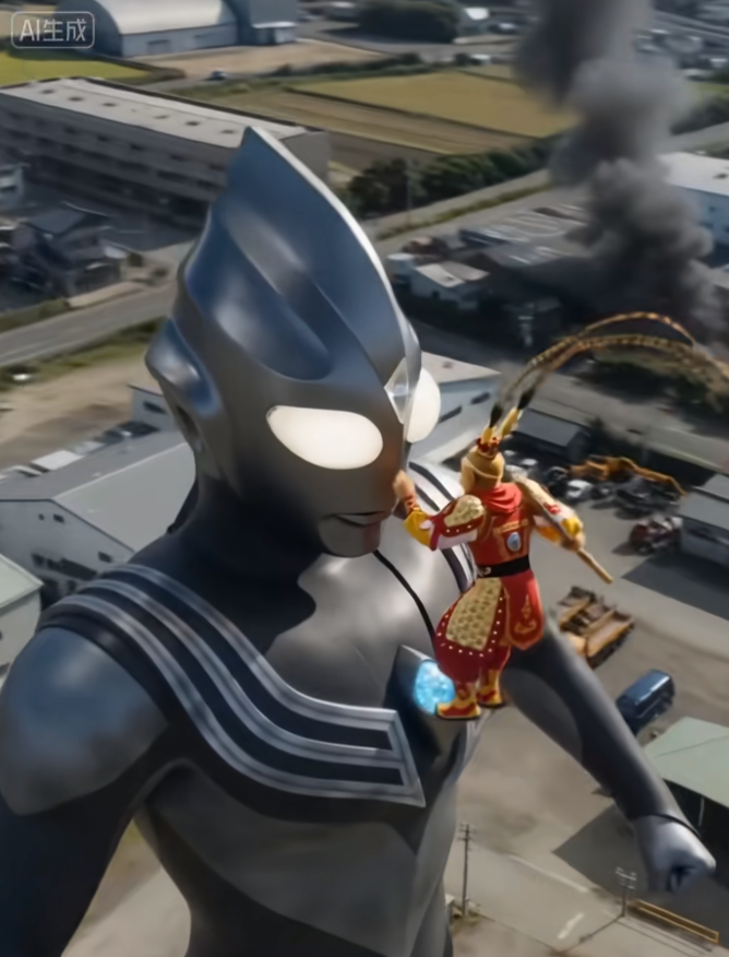 Seedance2.0生成的“孙悟空棒打奥特曼” 图源:“钱江晚报”微信公众号
